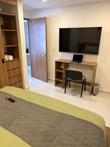 2 king bedrooms, 2 bathrooms, passthrough balcony, private entrance easy 1 floor access to amazing rooftop amenities